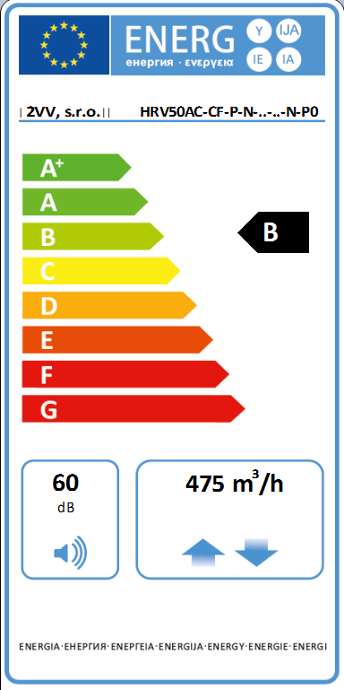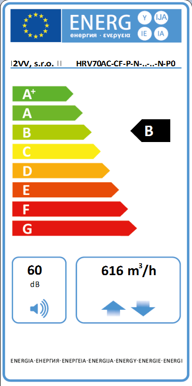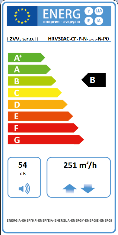 - trieda filtrácie pre AC ventilátory M5 (prívod) + G4 (odvod), pre EC ventilátory F7 (prívod) + G4 (odvod)