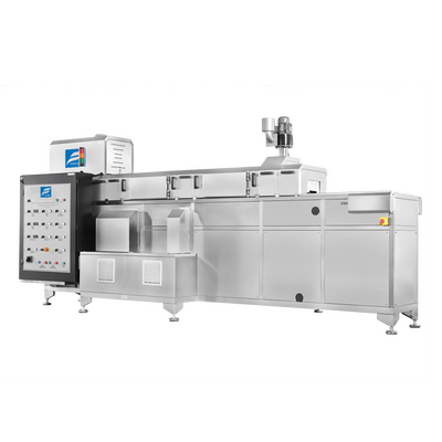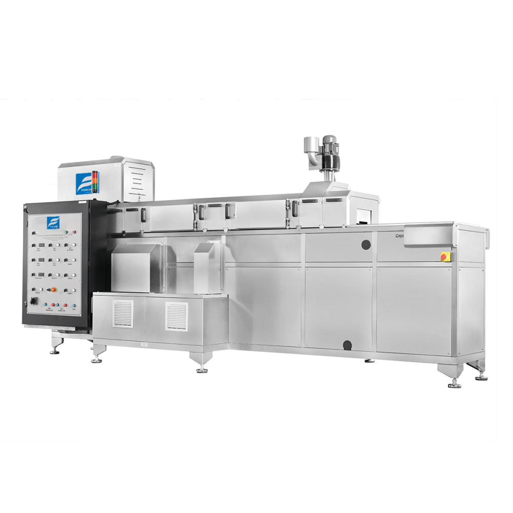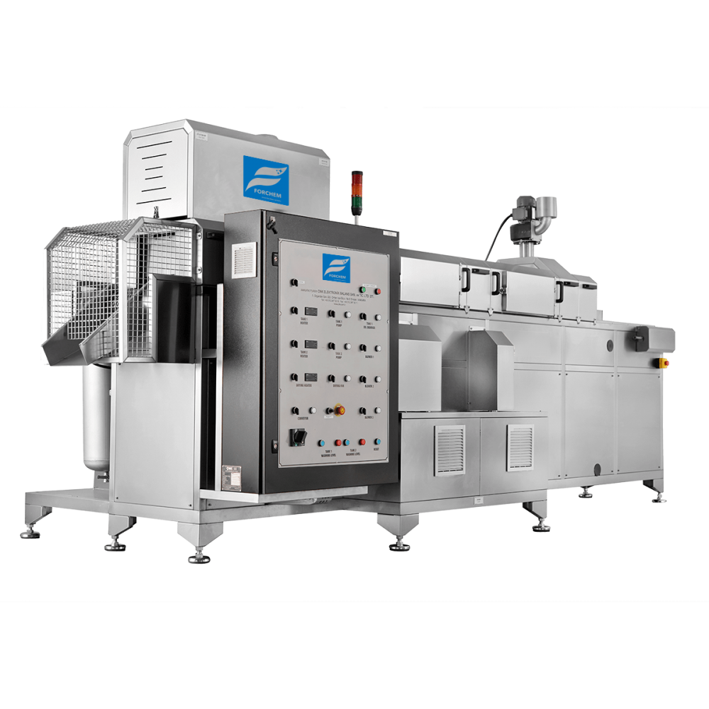 Tunelová myčka FORCHEM TM 600-2B s pásovým dopravníkem je vysoce výkonné řešení pro sériové čištění kovových a plastových dílů. Díly se po dopravníku automaticky přesouvají od vstupu k výstupu a procházejí zónami: předmytí, mytí, oplach a pasivace. Na závěr jsou důkladně vysušeny stlačeným horkým vzduchem.